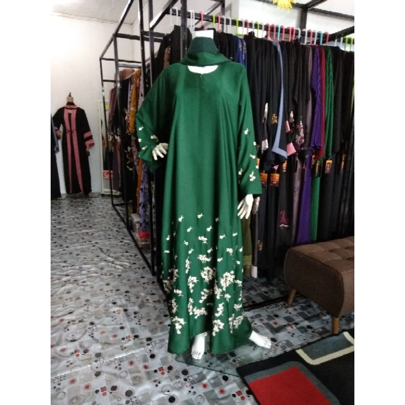 Sold Out Abaya Sulam Dubai Warna Hijau Emerald Kain Nida Jubah Abaya Muslimah Shopee Malaysia