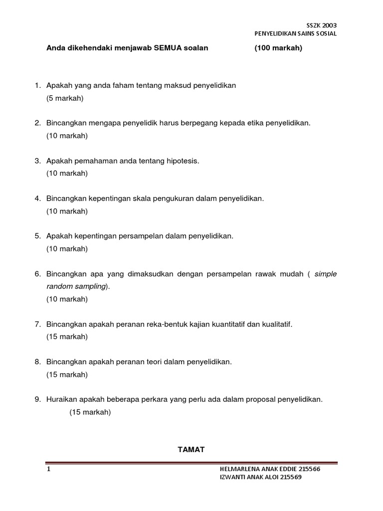 Contoh Soalan Dan Jawapan Hbef2503 Kaedah Penyelidikan Dalam Pendidikan Pdf